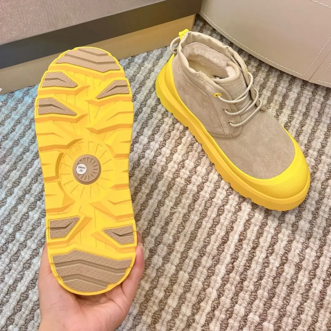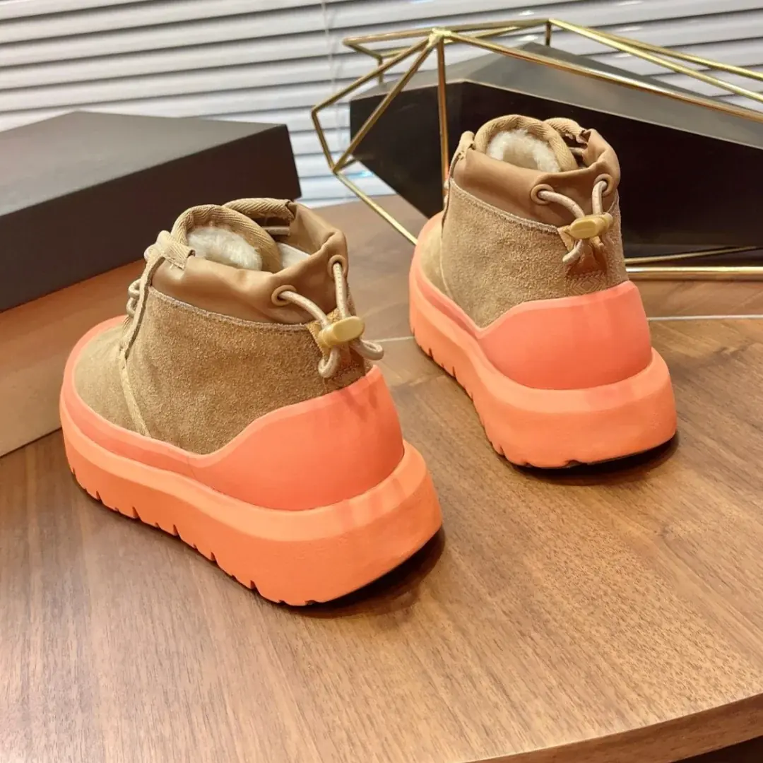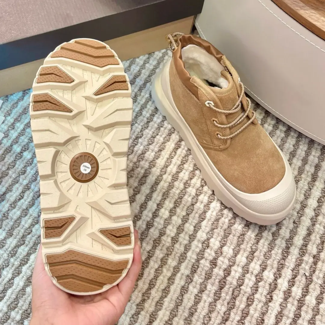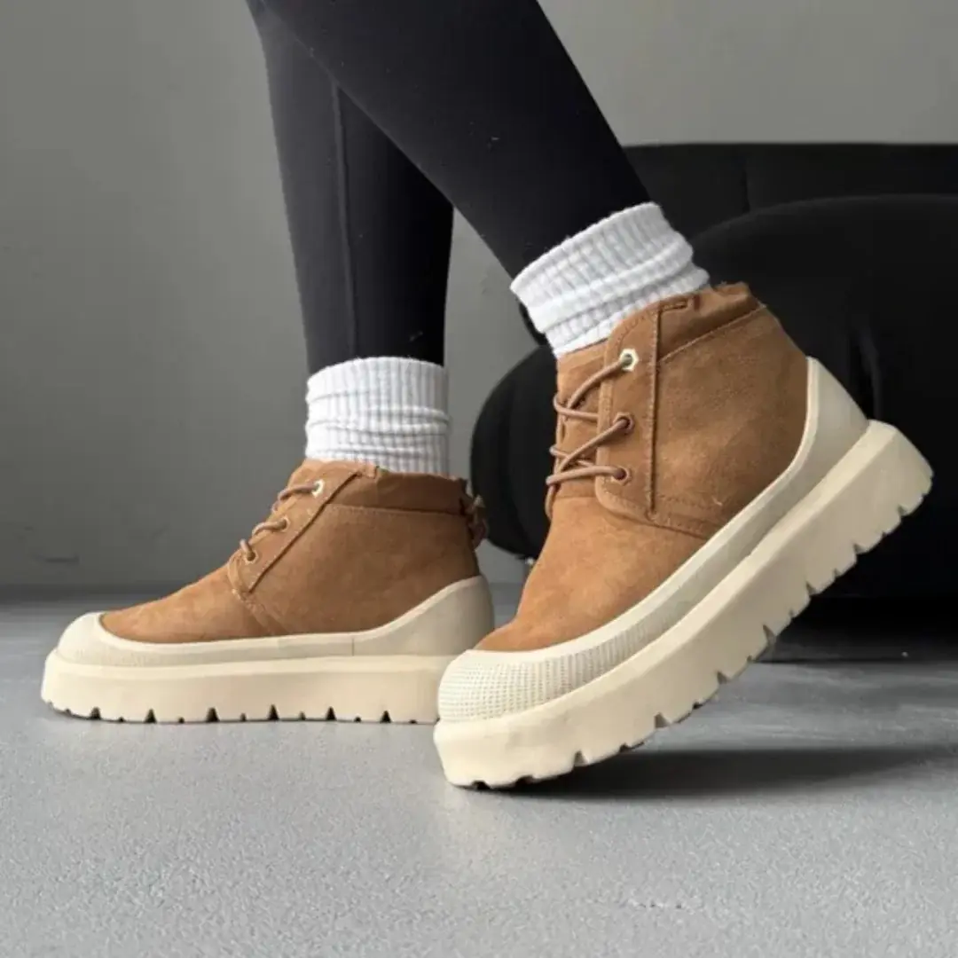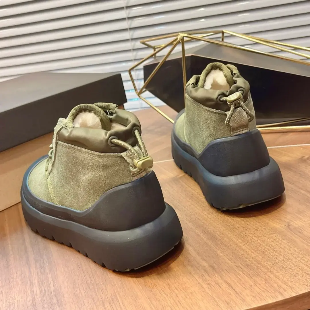 مصممة ببطانة من الفرو الفخم، توفر هذه الأحذية دفءًا وراحة لا مثيل لها. يضمن البناء القوي لهذه الأحذية المتانة، بينما توفر البطانة الإسفنجية الذكية توسيدًا فائقًا لقدميك. مثالية للظروف الثلجية، هذه الأحذية الغامضة ضرورية لخزانة ملابسك الشتوية.