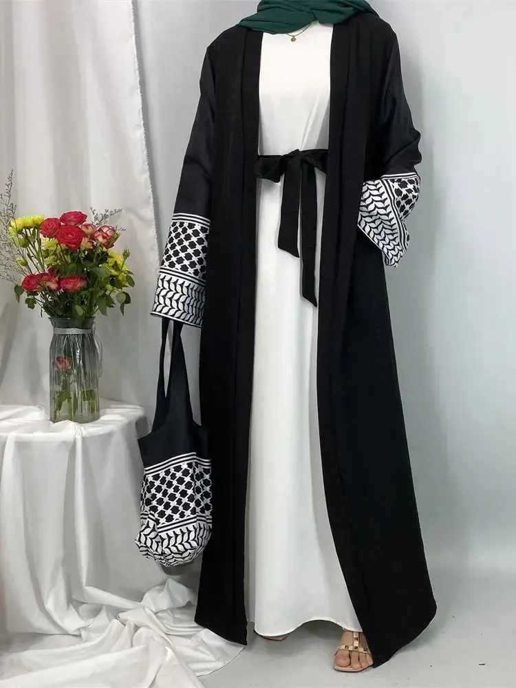 | لون | beige abaya and bag, black abaya and bag, white abaya and bag |