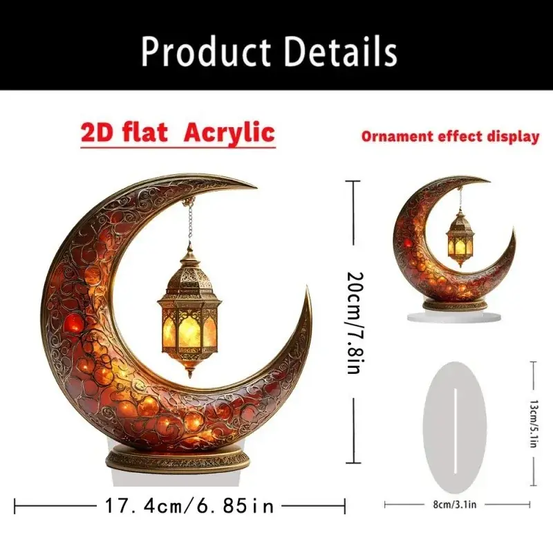 لوحة العد التنازلي لرمضان: لوحة أكريليك على شكل إسلام تمثل تقويمًا، ويمكن أن يكون القمر الهلالي المدمج بالمغناطيس هو التقويم لمساعدتك في تحديد أيام العد التنازلي.