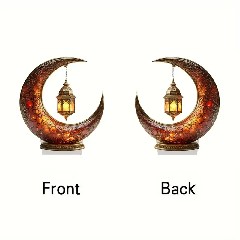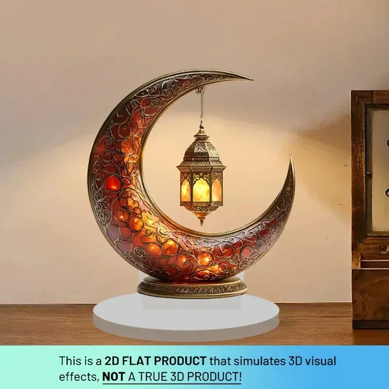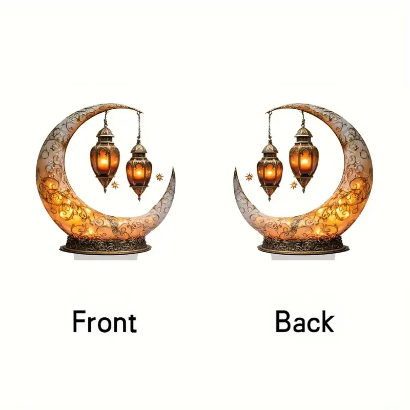 تصميم جميل:تم تصميم لوحة تزيين سطح المكتب لرمضان بشكل جيد مع تصميمات معقدة، وتتميز بإسلامية أسطورية مطبوعة بتقنية ثنائية الأبعاد وقمر هلال عملاق نابض بالحياة.
