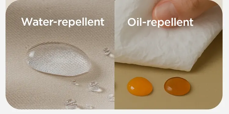 طبقة خارجية مقاومة للزيت والماء والأوساخ، مما يجعل التنظيف اليومي أمرًا سهلاً.لا مزيد من القلق بشأن اتساخ ملابس الأطفال أثناء اللعب.
