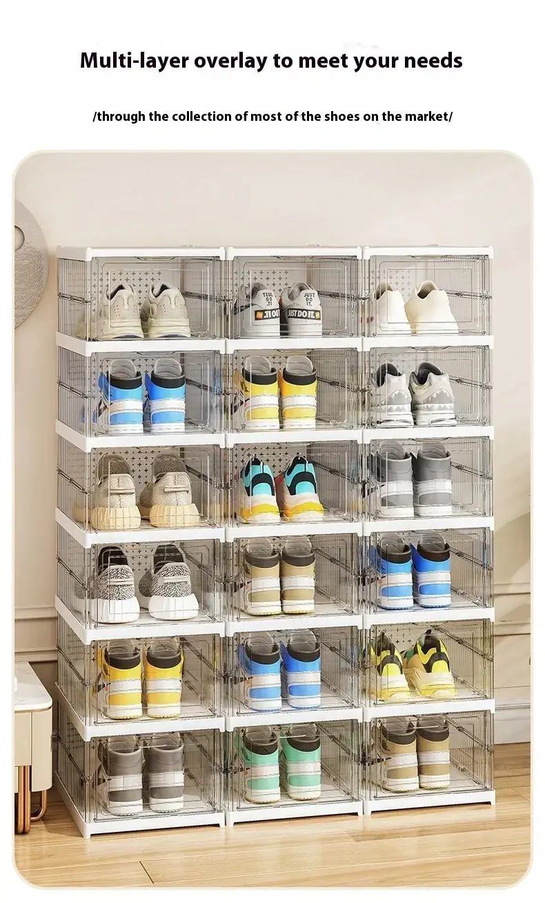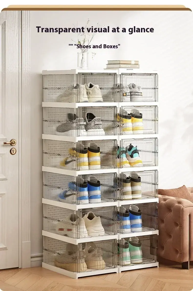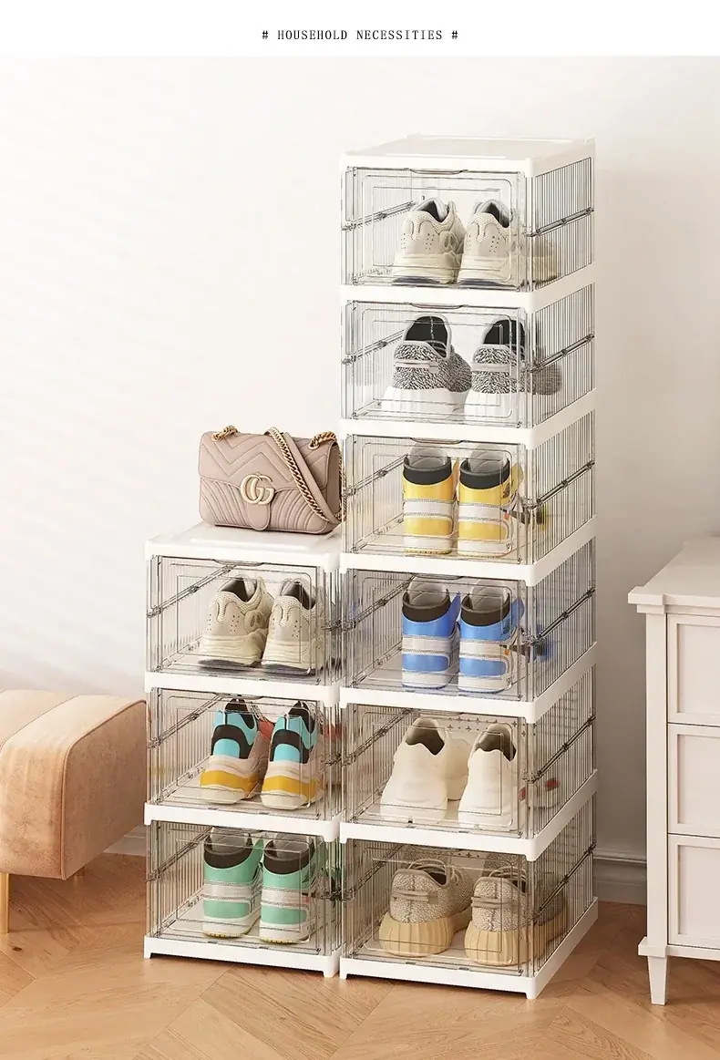 صندوق تخزين الأحذية الشفاف القابل للطي – منظم قابل للتكديس للأحذية