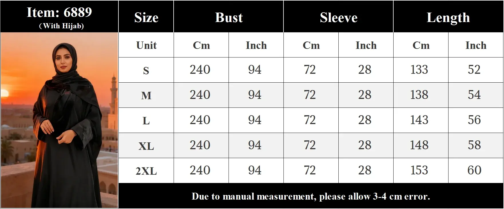 XL: الصدر 240 سم، الكم 72 سم، الطول 148 سم