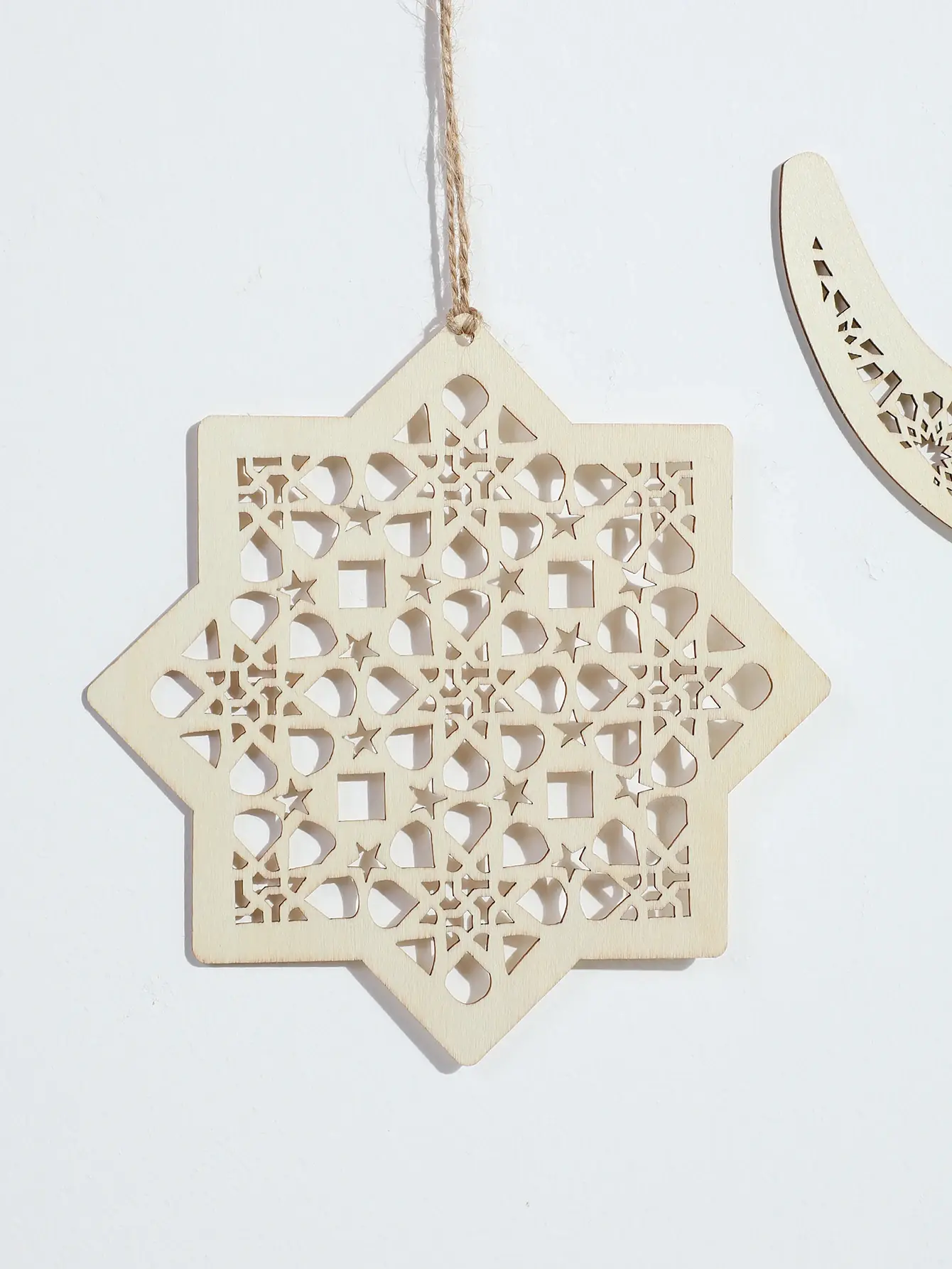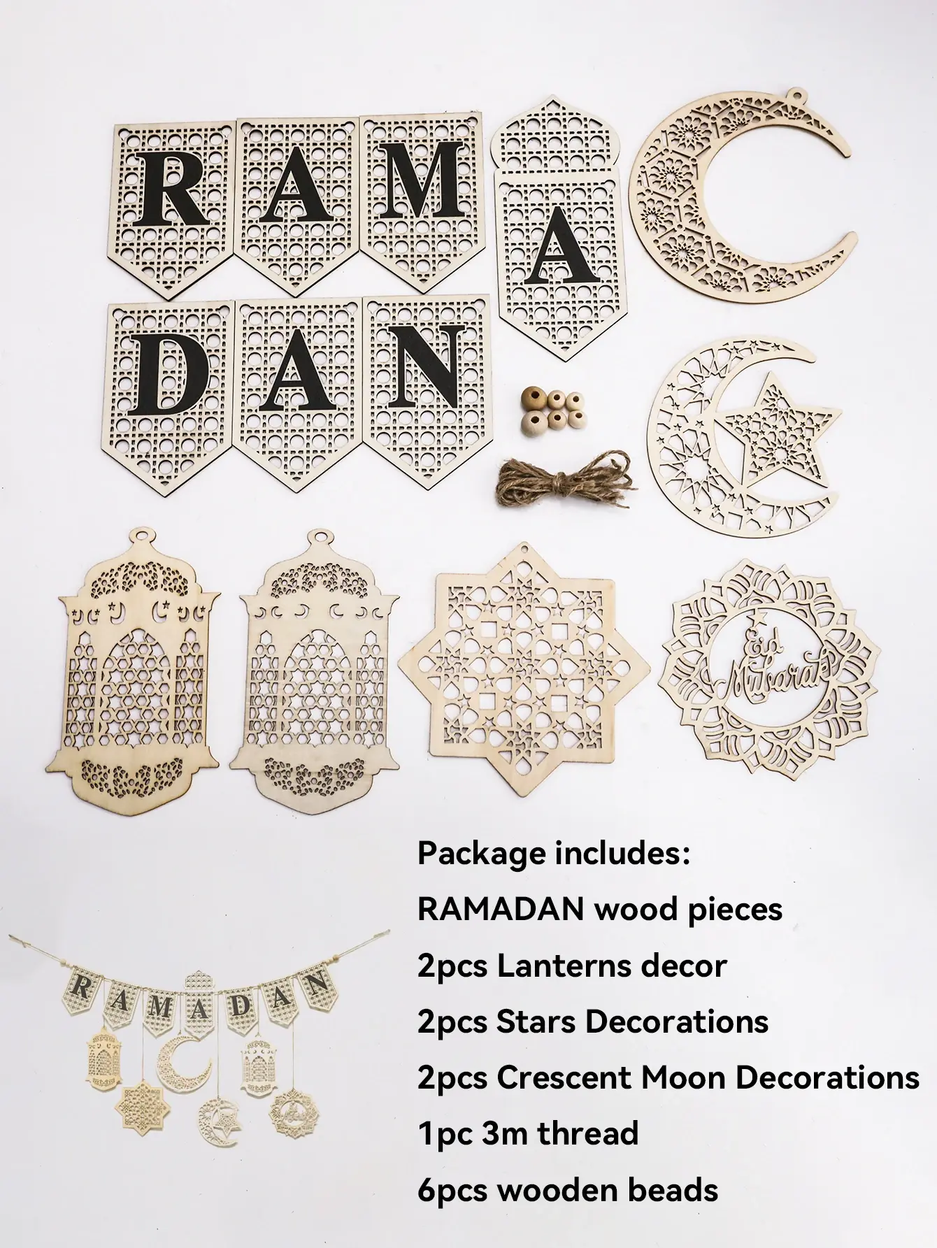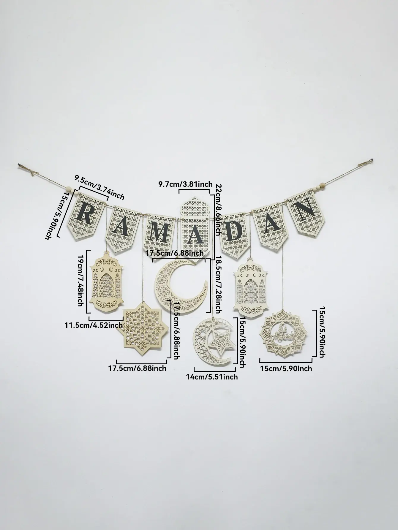 يتميز إكليل لافتة رمضان الخشبية بموضوع إسلامي، مما يجعله ديكورًا مثاليًا للمهرجانات الإسلامية.