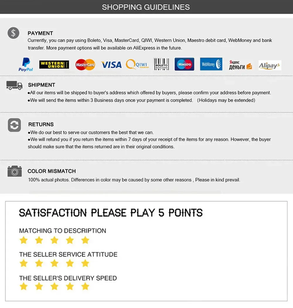 1. صديقي العزيز ، يرجى تذكر أن تقدم اسمك بالكامل وعنوانك التفصيلي ، حتى تتمكن من استلام الطرد بنجاح.
