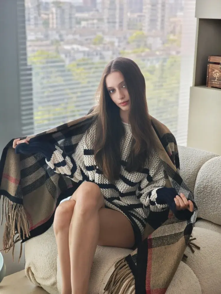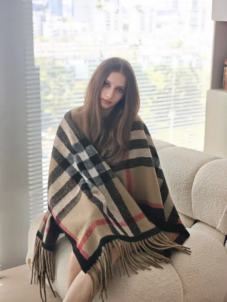لا يعزز التصميم ذو الشراشيب الطويلة الجاذبية البصرية فحسب، بل يوفر أيضًا طبقة إضافية من الدفء.
