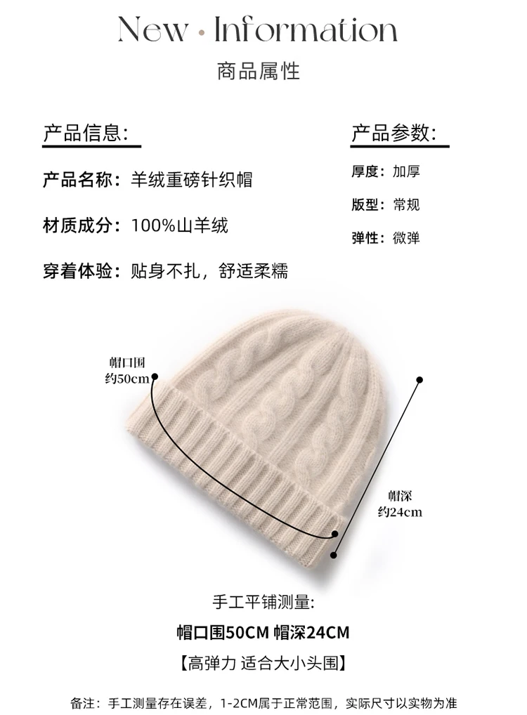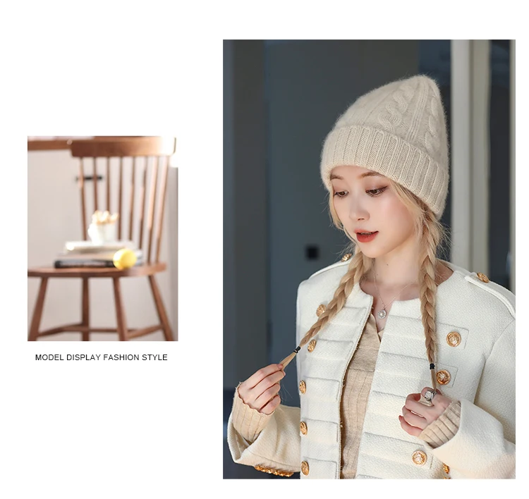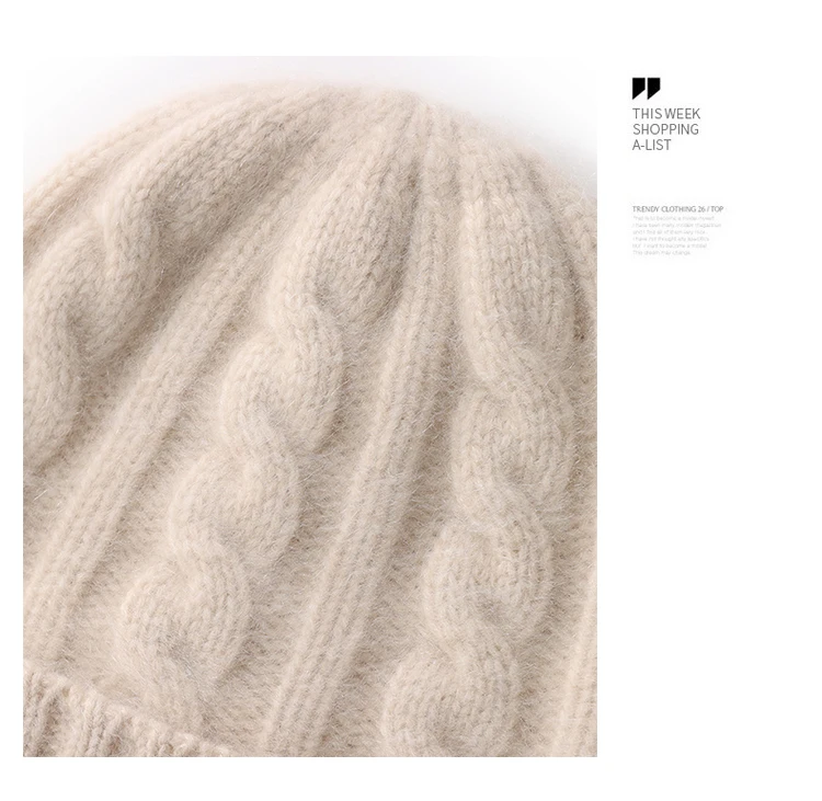 Material: 100% Pure CashmerenApplicable Season: WinternDesign and Style: Striped Knit PatternnFunctionality: Windproof and Ear ProtectionnSize: One Size Fits MostnGender: Womennnn**Exceptional Comfort and Warmth**nThe Besfilin Women's Thickened 100% Pure Cashmere Beanie Hat is a testament to luxury and comfort. Crafted from the finest cashmere fibers, this beanie offers an unparalleled softness that glides across your skin, ensuring a cozy and snug fit. The thickened design not only adds to the beanie's plush appeal but also provides excellent ear protection, making it an ideal accessory for the chilly autumn and winter months. The beanie's windproof feature is a game-changer, as it keeps you snug and protected against harsh winds, allowing you to enjoy your outdoor activities without the worry of the cold.nn**Versatile Style and Fit**nDesigned with versatility in mind, the besfilin hat is a staple piece in any winter wardrobe. Its classic wool skullies hat design is complemented by a striped knit pattern that adds a touch of elegance to your casual attire. The one-size-fits-most design ensures that this beanie is not only stylish but also practical, making it a must-have for women who value both fashion and functionality. Whether you're heading out for a brisk walk or enjoying a day at the park, this beanie is the perfect accessory to keep you warm and looking chic.nn**Quality and Durability**nCrafted with care in Hebei, the besfilin cashmere beanie is a testament to quality and durability. The cashmere material is renowned for its ability to retain warmth without the bulk, making it an ideal choice for those who value both comfort and style. The hat's craft of weaving, knit into a thickened design, ensures that it withstands the rigors of daily wear, maintaining its shape and softness through countless washes. With a 105℃挥发物≤ value, you can be assured of the beanie's longevity and resistance to wear and tear. Whether you're looking for a cozy accessory for your daily routine or a thoughtful gift for a loved one, the besfilin hat is a choice that promises both quality and comfort.