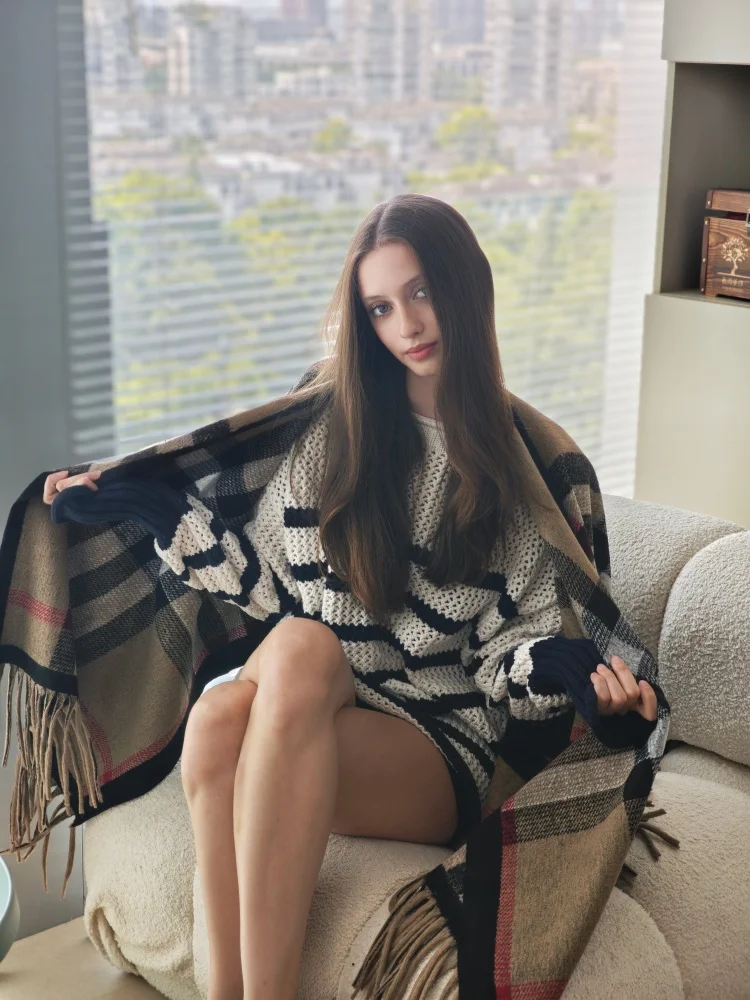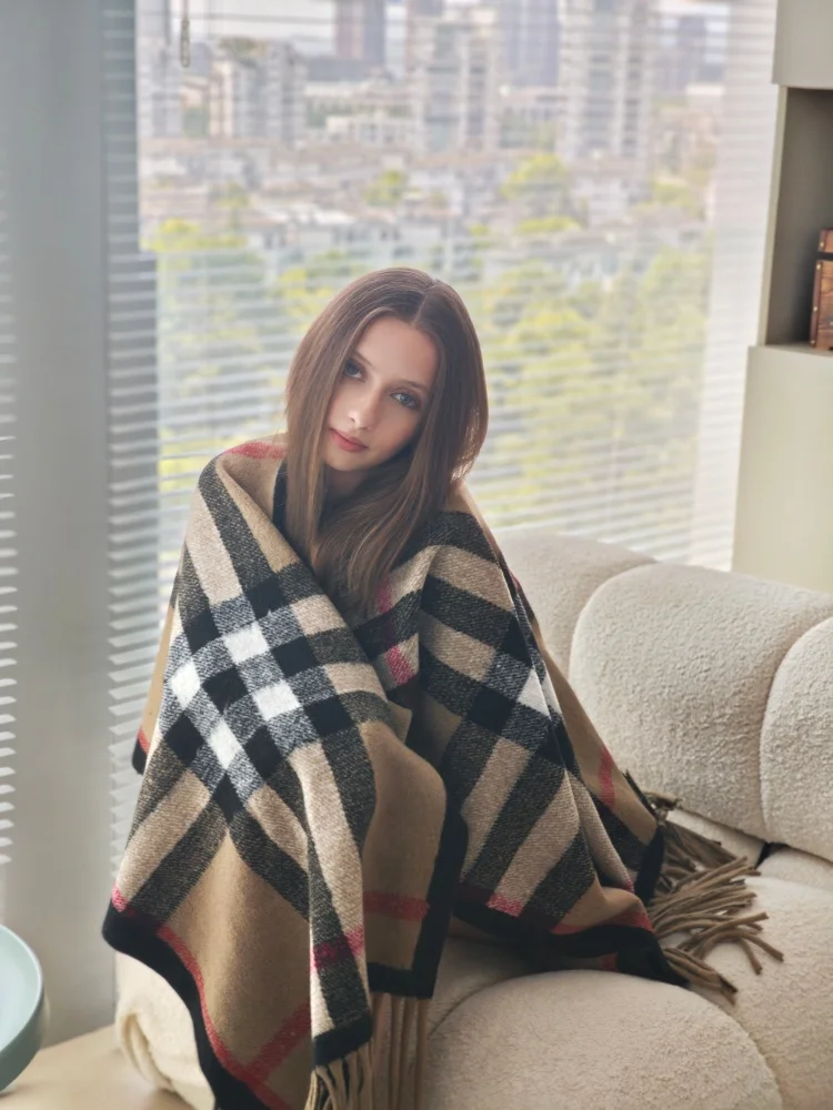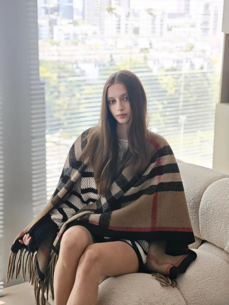 Crafted from high-quality acrylic, this poncho scarf offers warmth and comfort during chilly autumn and winter days.