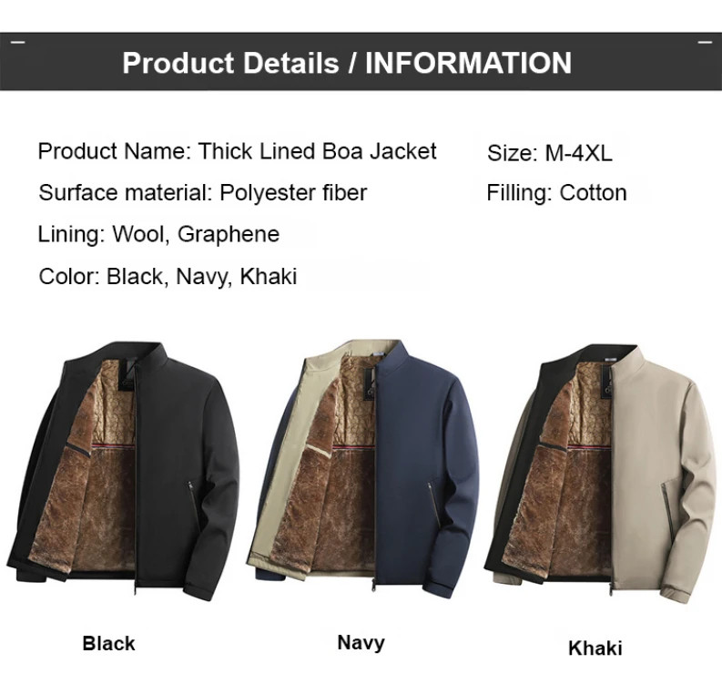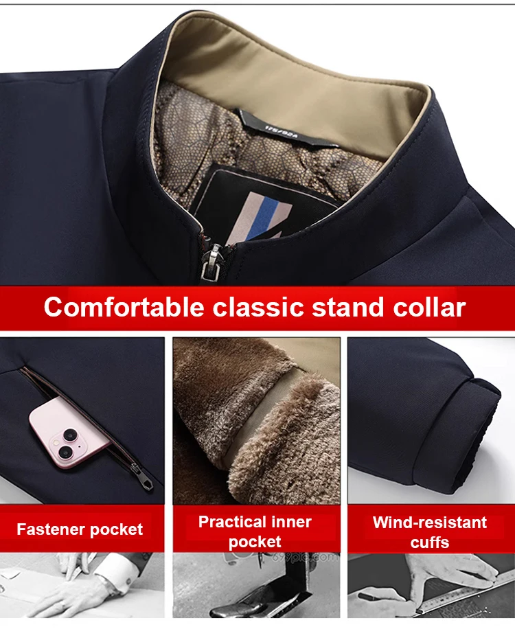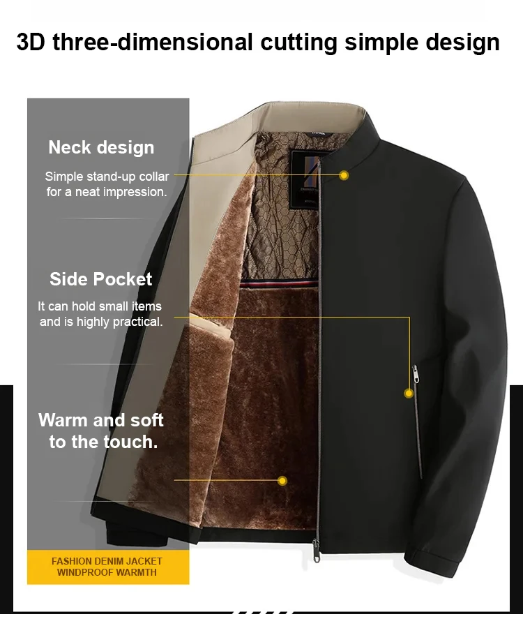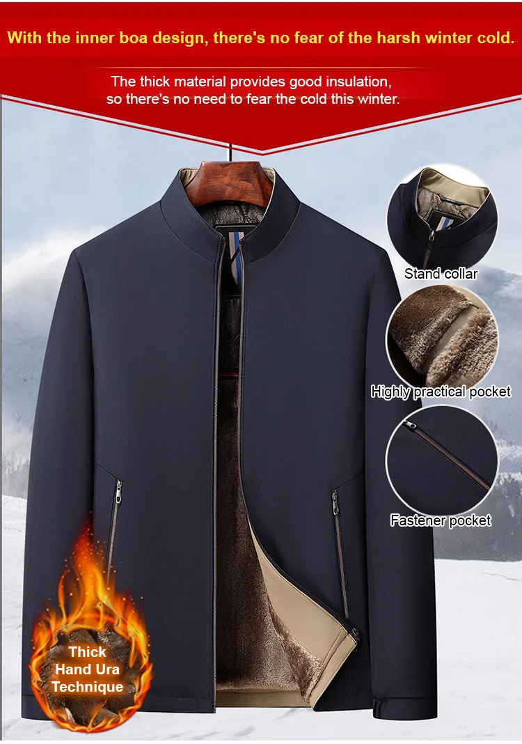 Material: Polyester Lining Material: Polyester Closure Type: Zipper Craft of Weaving: Knit Applicable Scene: Daily Applicable Season: Winter |Stand Up Collar Jacket|Stand Up Collar Jacket Men|Stand Up Jacket| **Elevate Your Wardrobe with Versatile Comfort** Embrace the cooler months with the Men's Stand-Up Collar Fleece-Lined Jacket, an essential addition to your winter collection. This jacket is not just about keeping warm; it's a statement of style. The stand-up collar design offers a modern twist, while the fleece lining ensures you stay cozy without compromising on fashion. The polyester construction offers durability, making it perfect for daily wear, whether you're commuting to work or running errands. **Tailored for the Modern Man** Crafted with attention to detail, this jacket features a knit craft of weaving that adds to its sophisticated look. The zipper closure type provides easy access, and the polyester material is designed to withstand the rigors of daily use. Its casual style makes it a versatile piece that can be dressed up or down, adapting seamlessly to various occasions. The ideal outdoor wear for winter, the jacket's warmth is matched by its sleek appearance. **Adaptability and Comfort for Every Outing** With its winter-friendly design and knit craft, this jacket is the ultimate companion for those chilly days. The polyester material ensures that the jacket remains lightweight while providing superior warmth, making it the go-to choice for men who value both style and functionality. The jacket's stand-up collar design adds a touch of elegance, making it a stylish choice for both casual outings and more formal events. The ideal blend of practicality and fashion, this jacket is a must-have for the modern man's wardrobe.