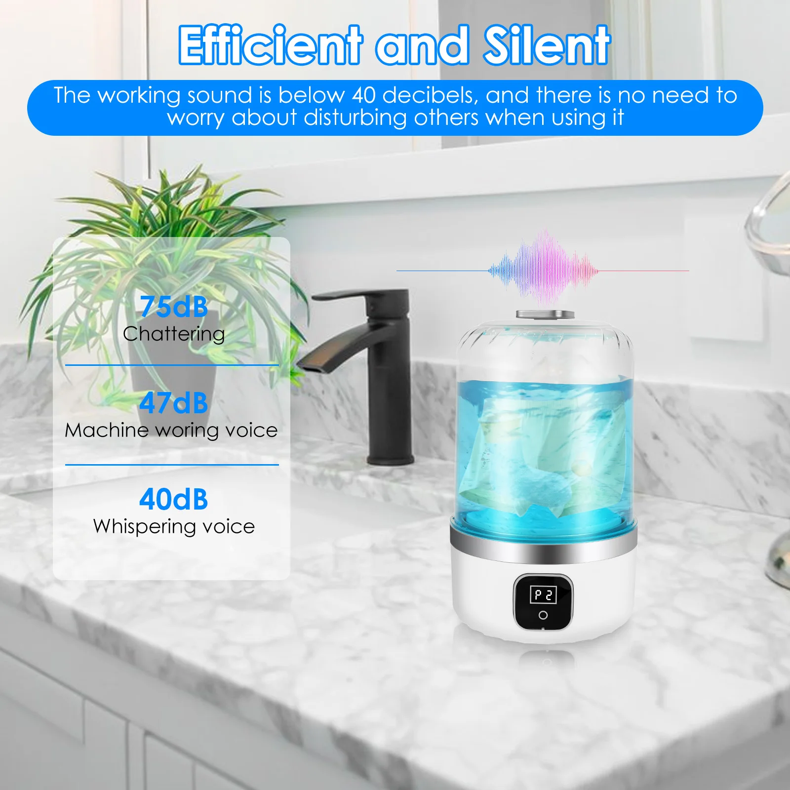 【Double Mode】The portable small washer supports 2 preset modes . Normal mode: 5 minute quick wash and 10 minute powerful deep wash