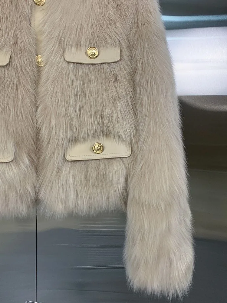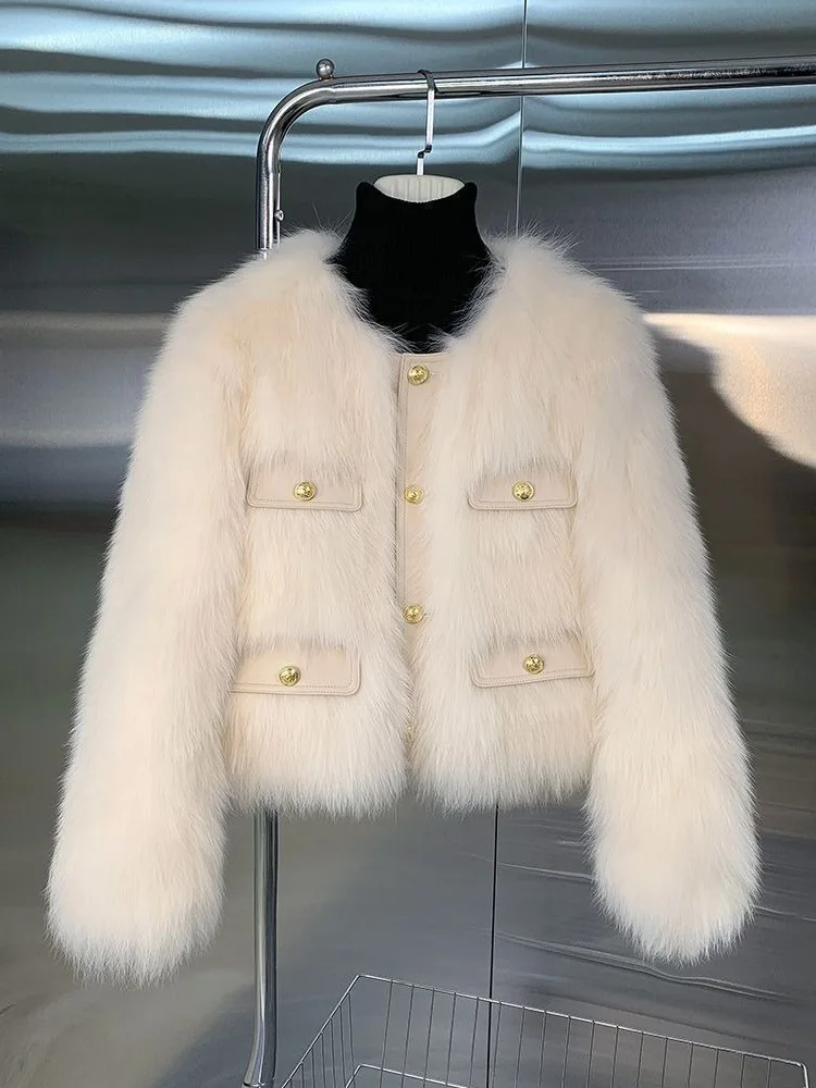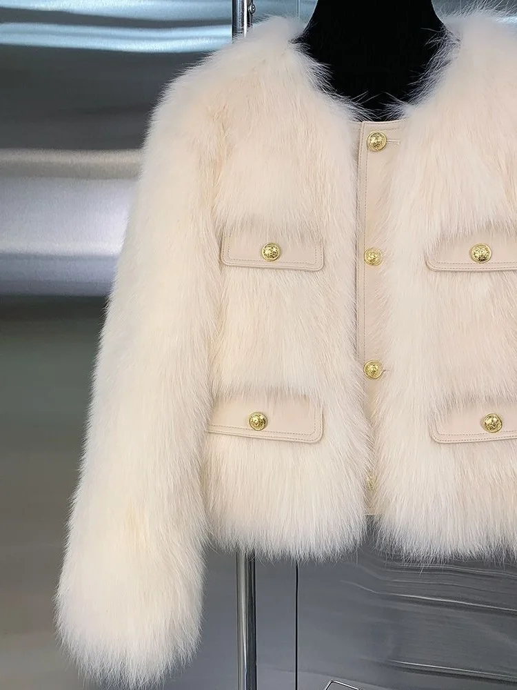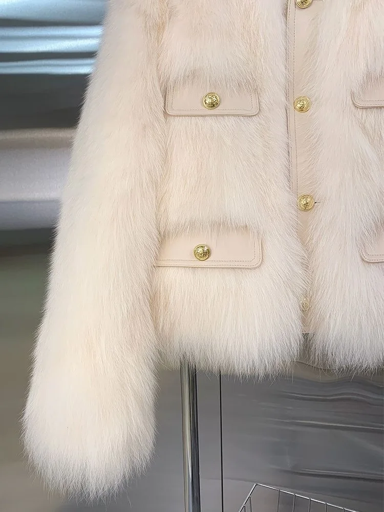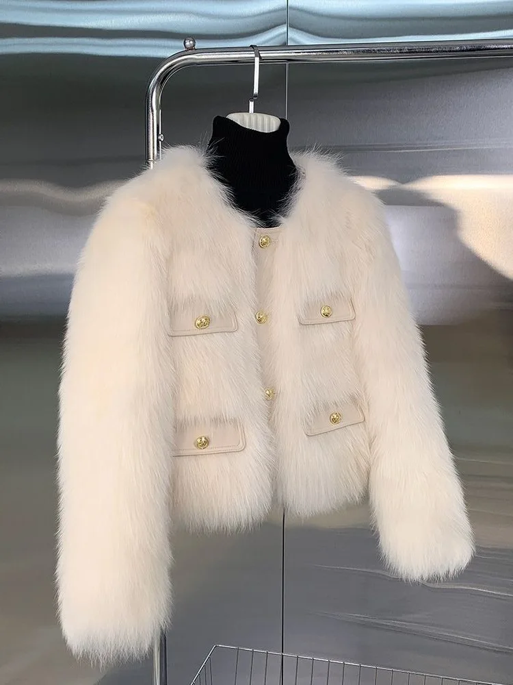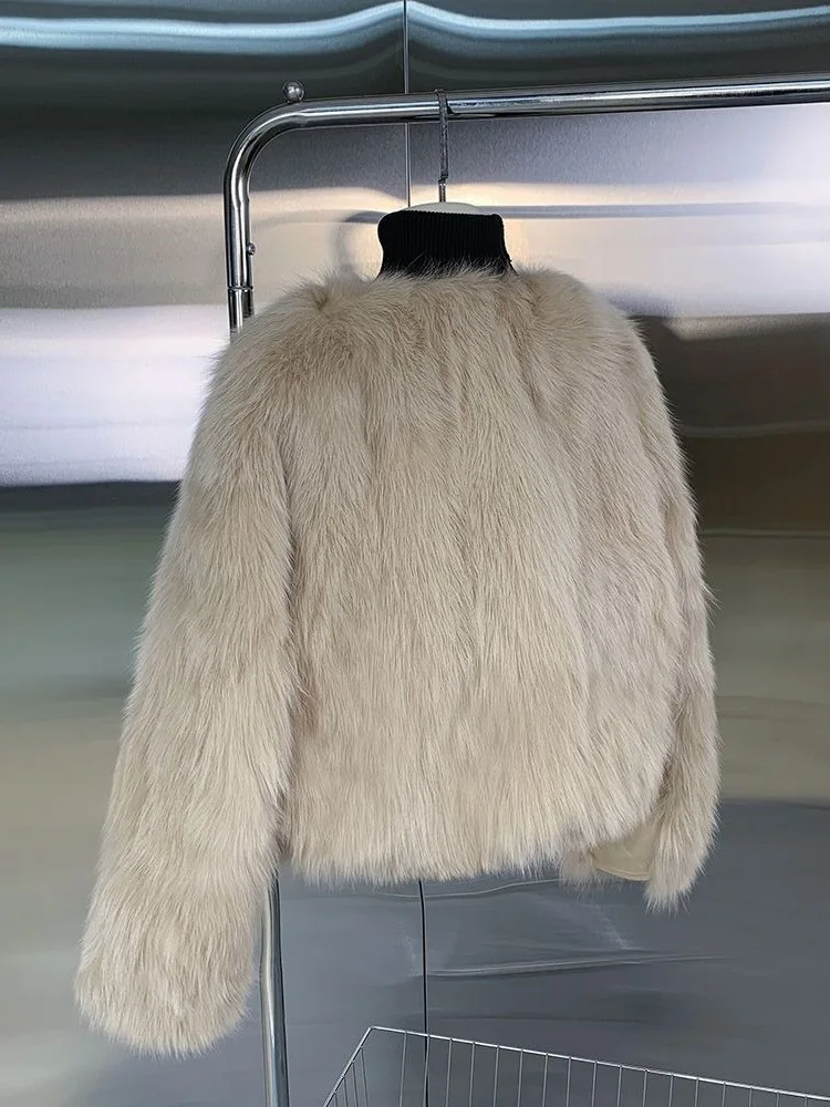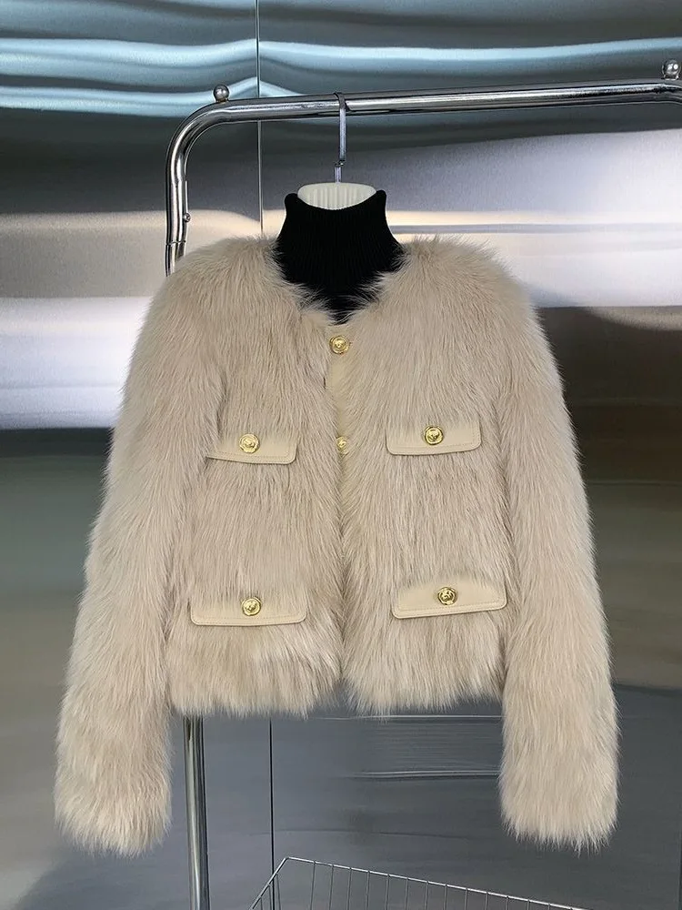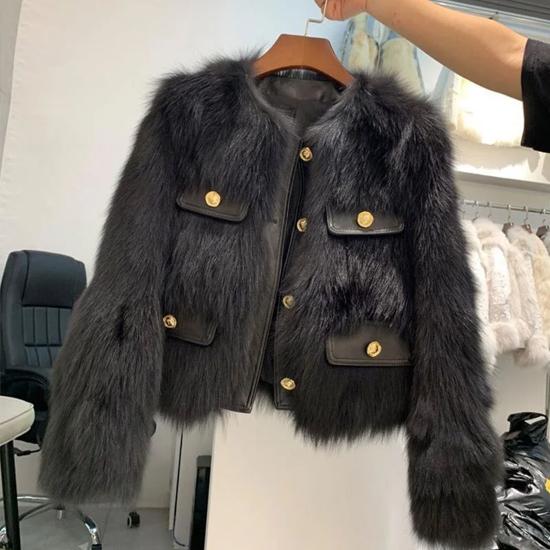 Crafted with fox fur simulation, this coat offers a luxurious feel without the animal cruelty.