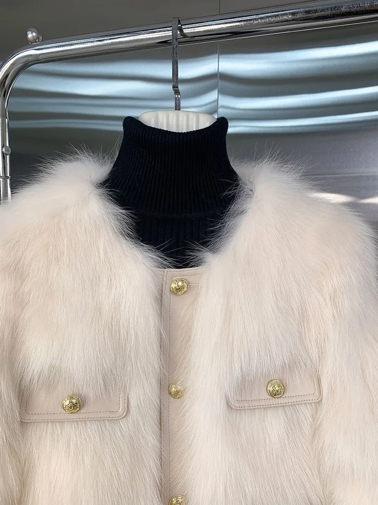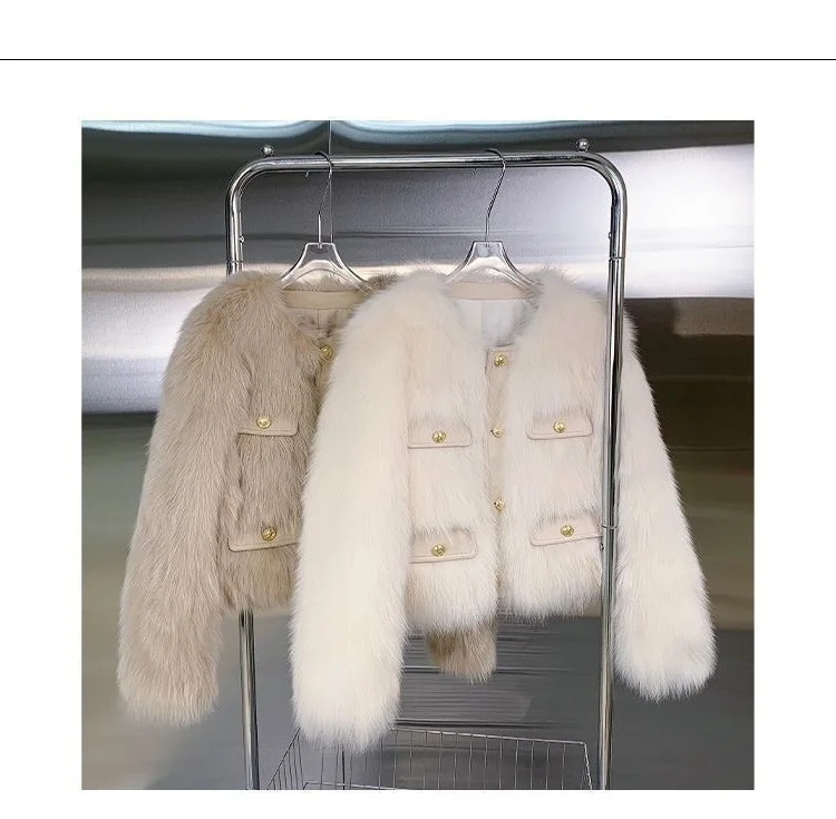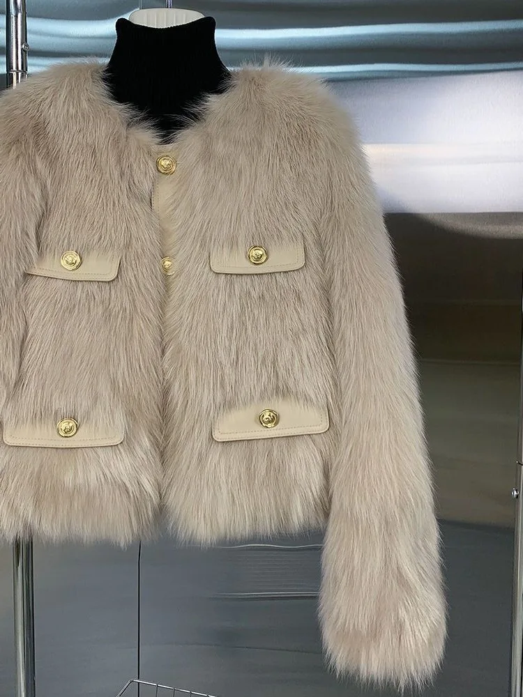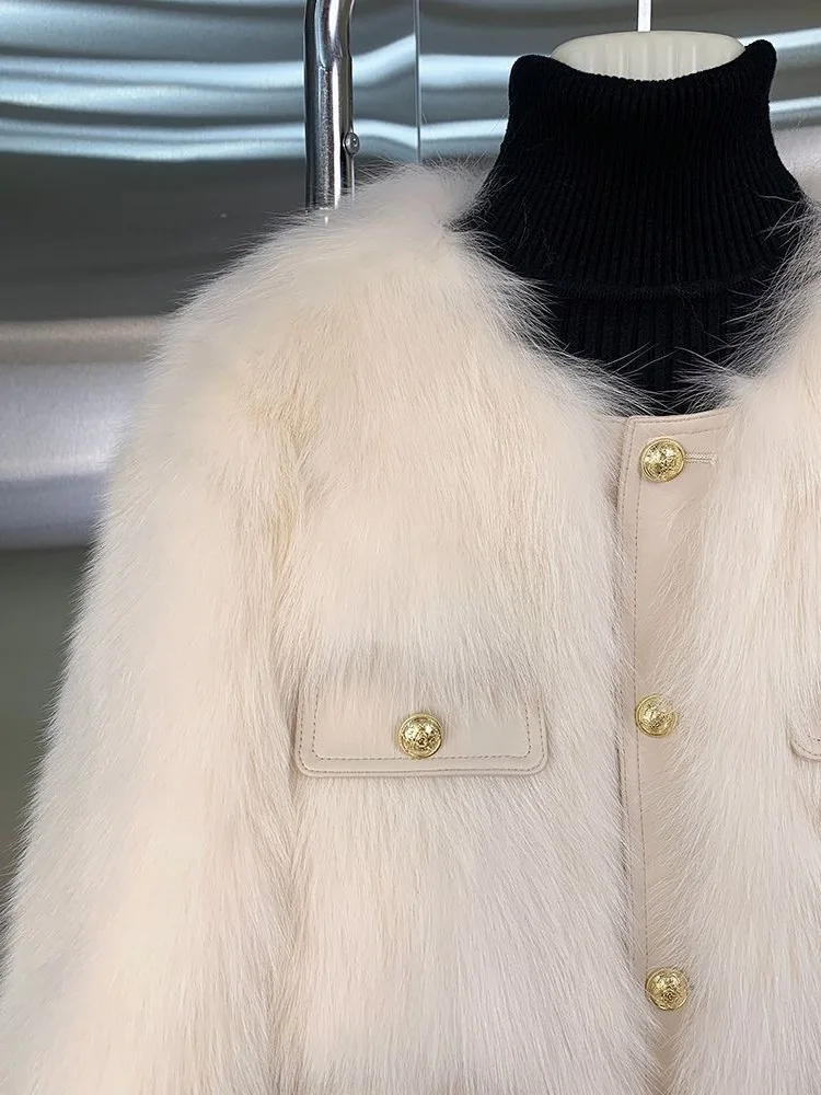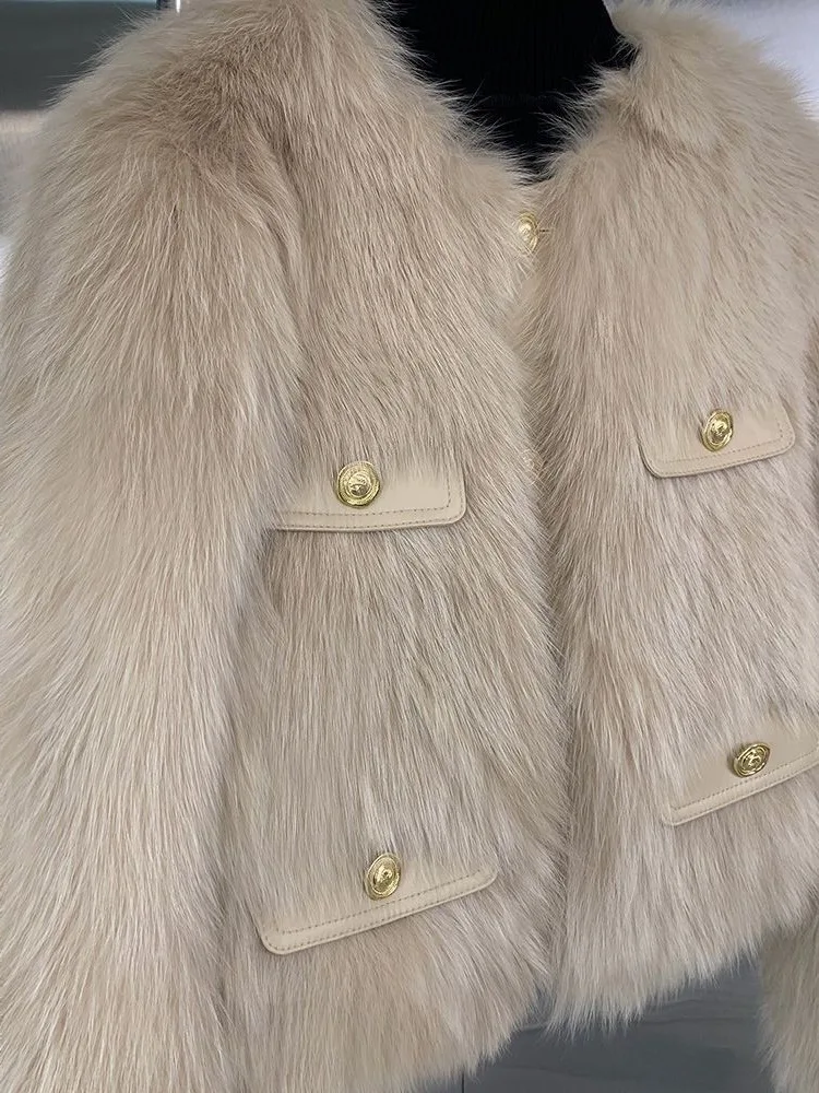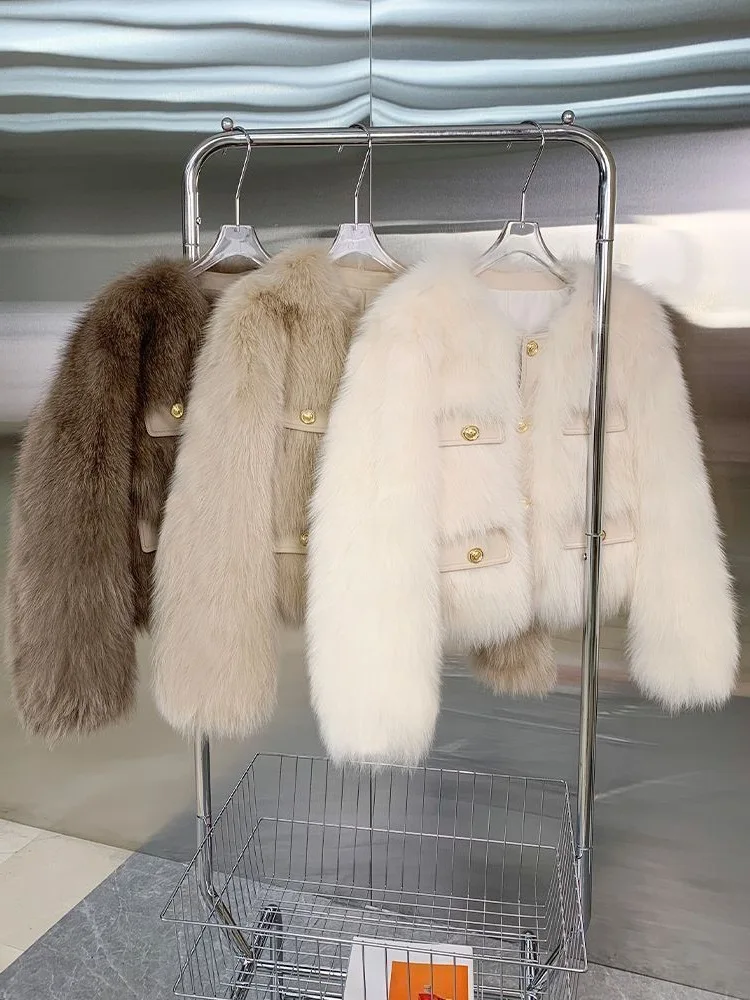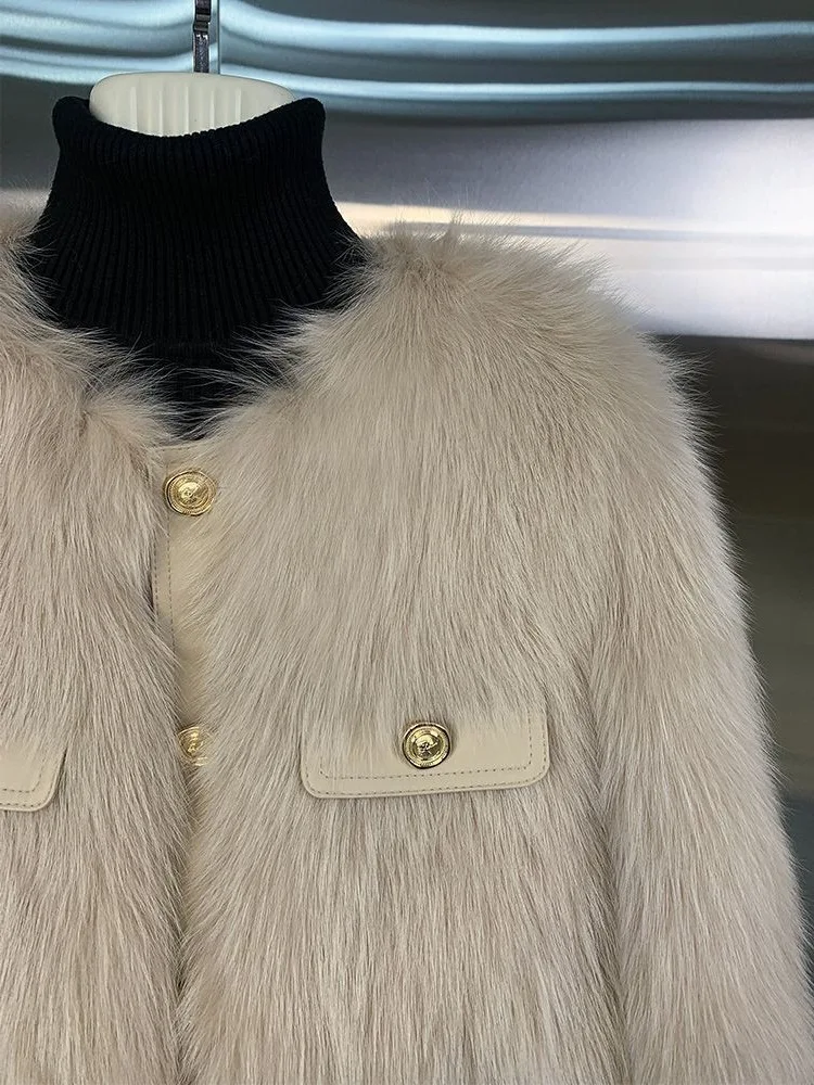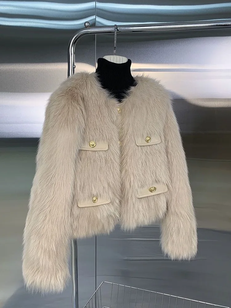 Crafted with fox fur simulation, this coat offers a luxurious feel without the animal cruelty.
