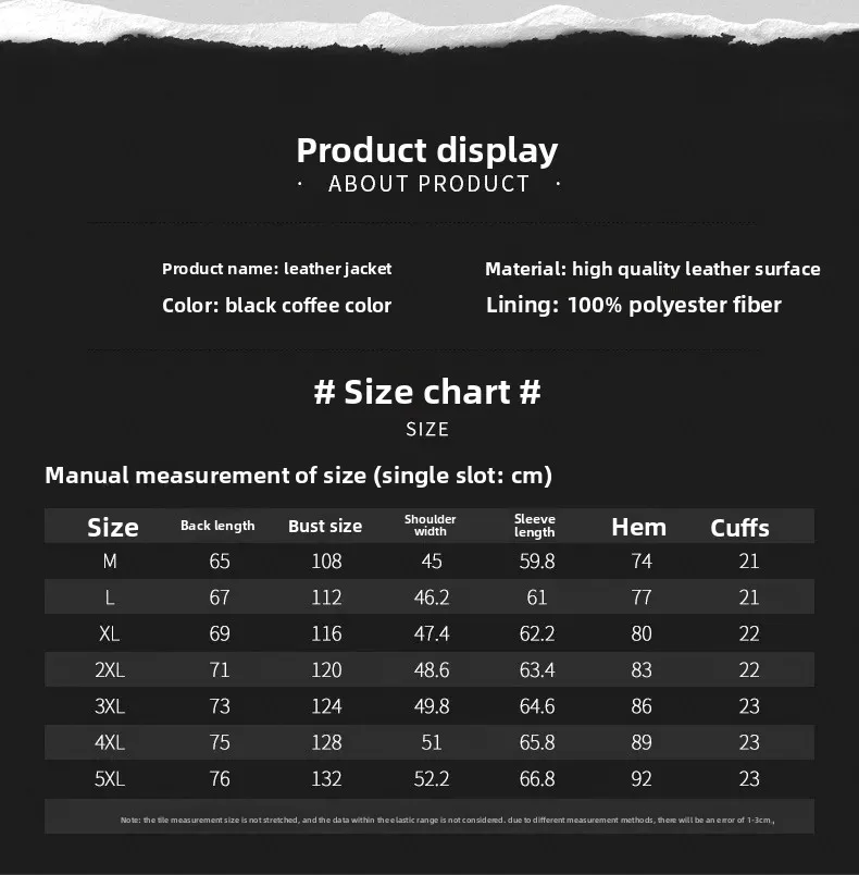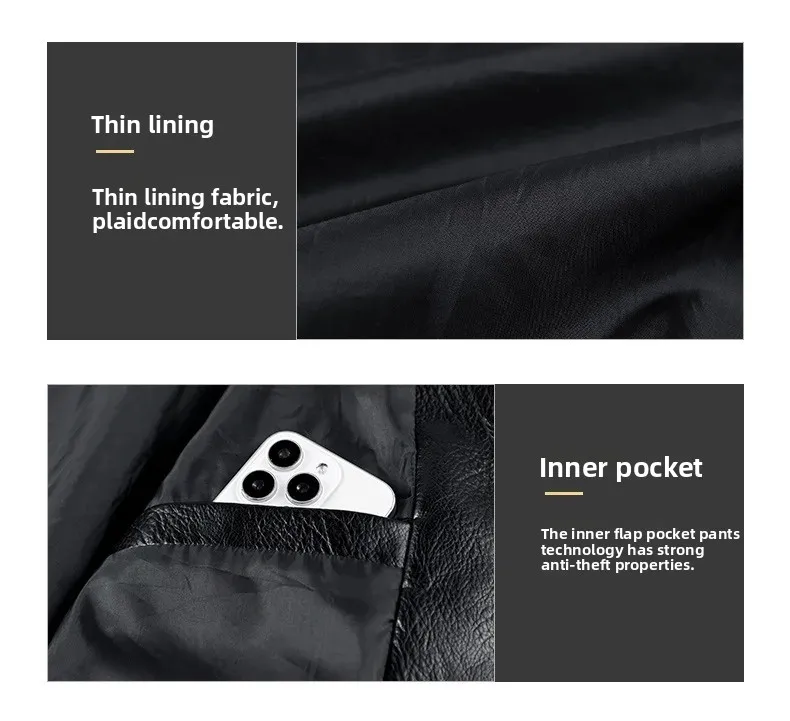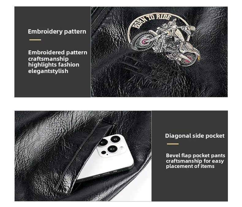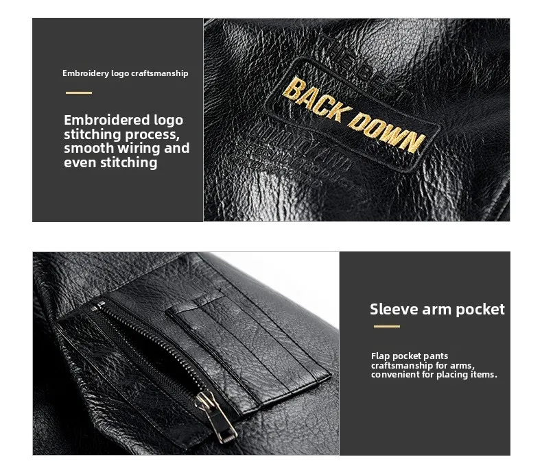 • PU Leather Stand Collar : The PU leather stand collar offers a sleek look while providing warmth and protection against the elements.