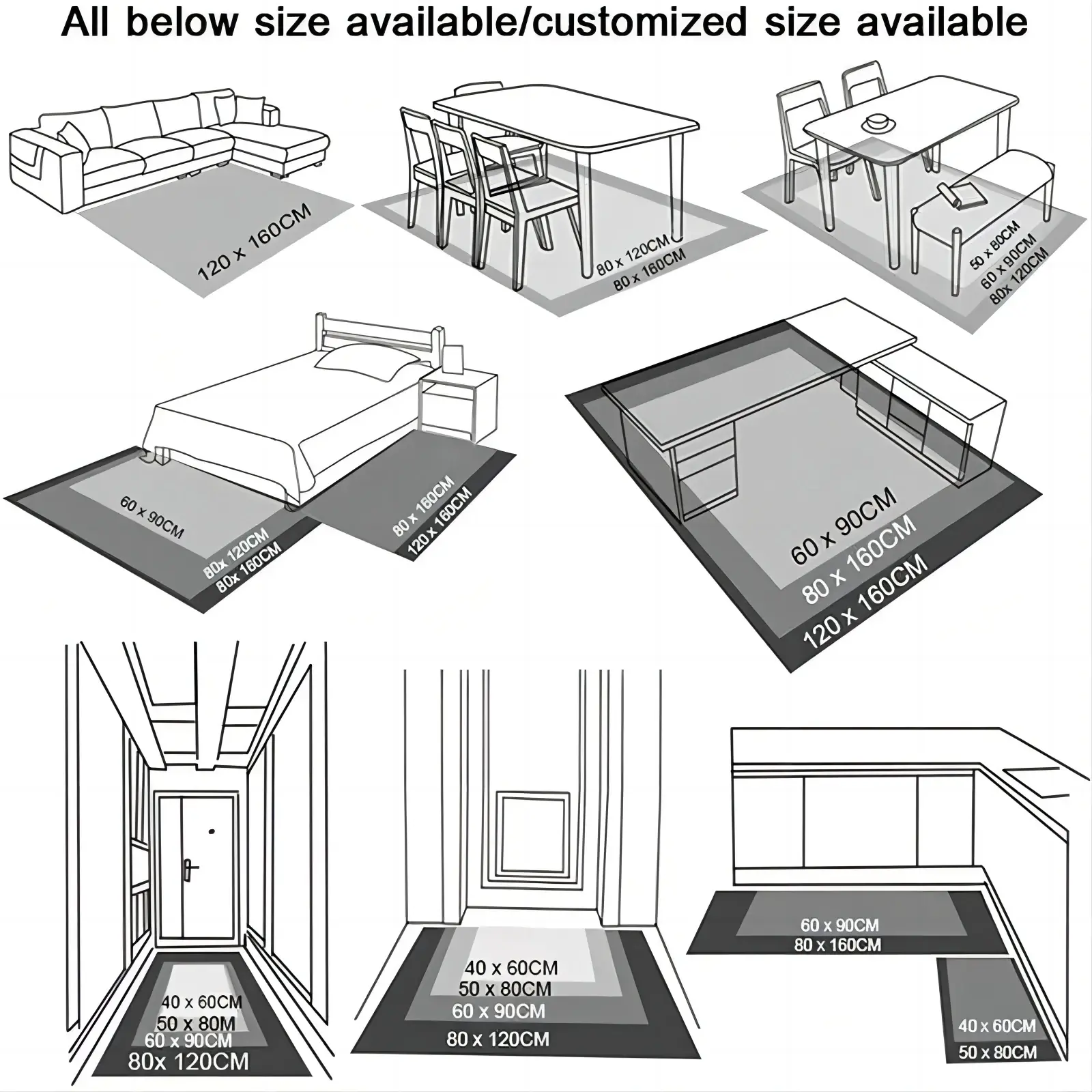 | مقاس | 100X150CM(3.3X4.9FT, 120X160CM(3.9X5.3FT, 120X180CM(3.9X5.9FT, 160X230CM(5.3X7.6FT, 80X120CM(2.6X3.9FT, 80X160CM(2.6X5.3FT |