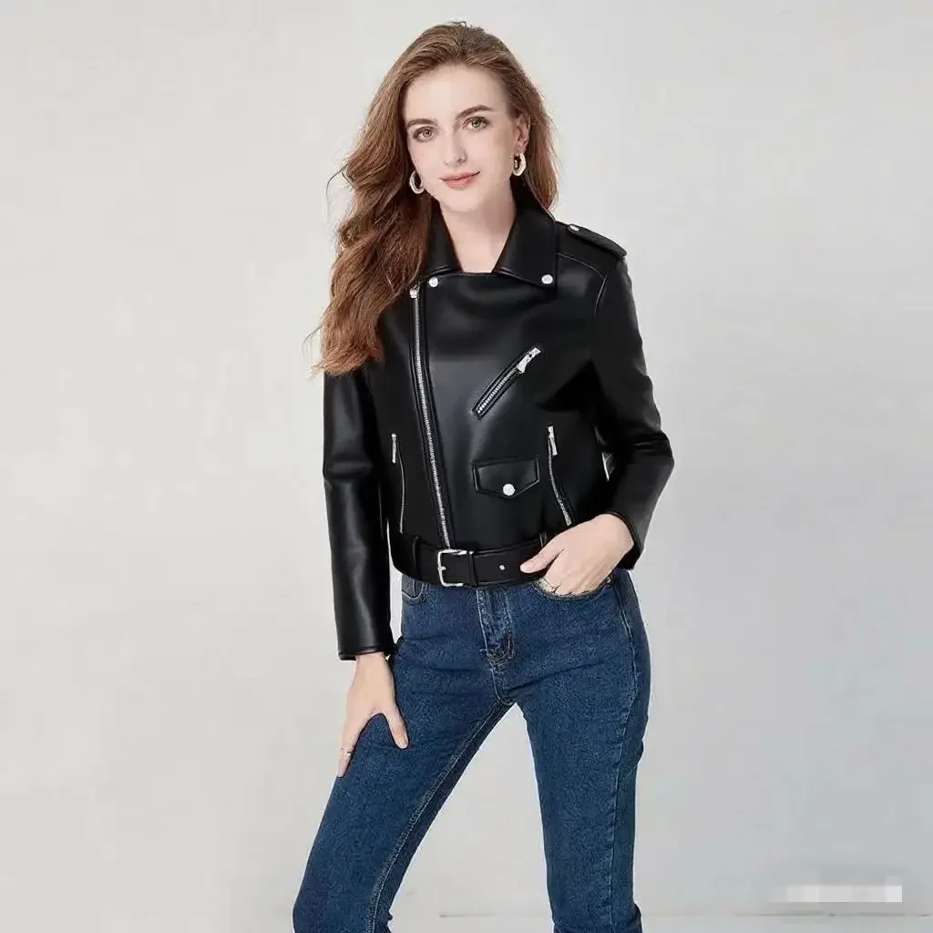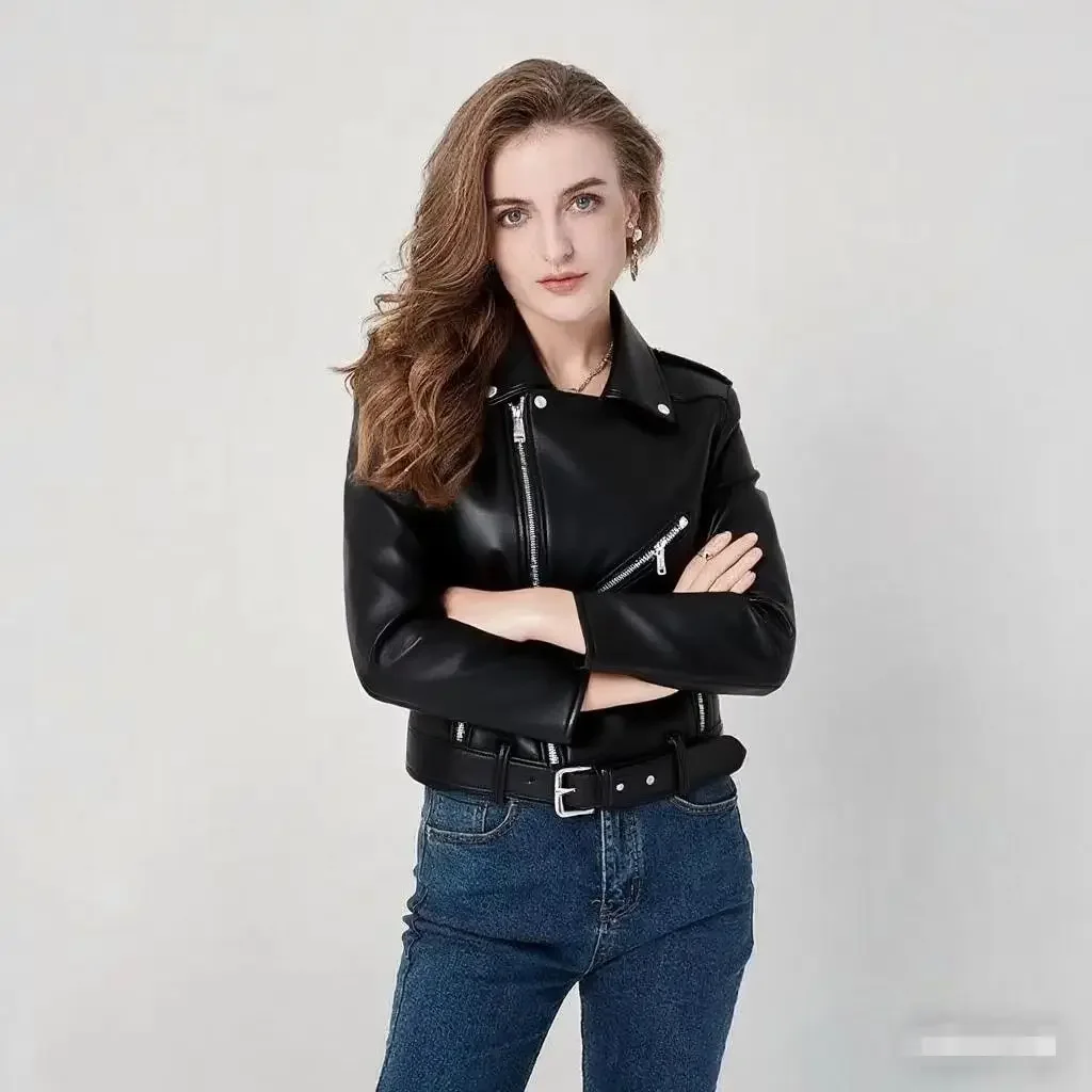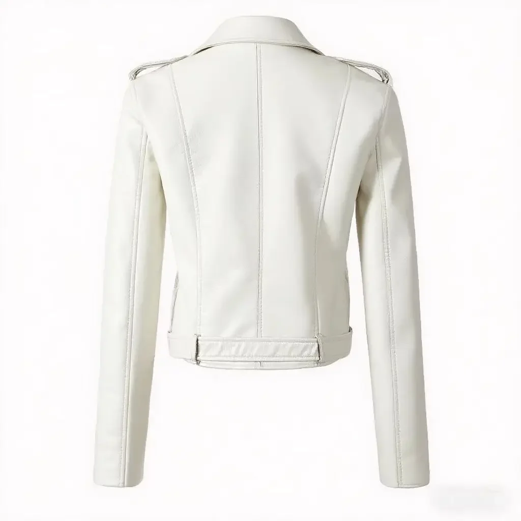 • Premium Leather Material : Crafted from high-quality leather, this jacket offers durability and a luxurious feel, perfect for the fashion-forward woman.
