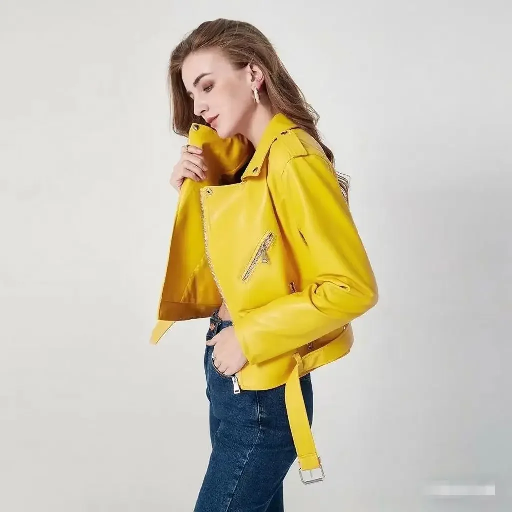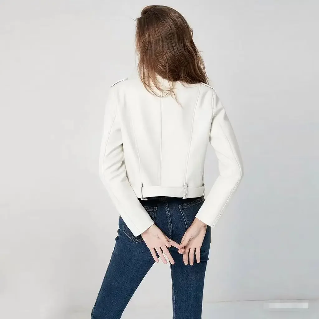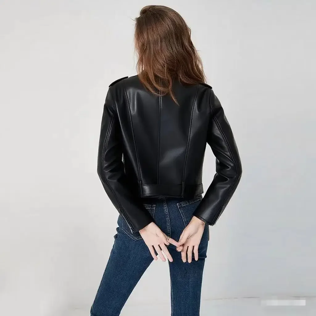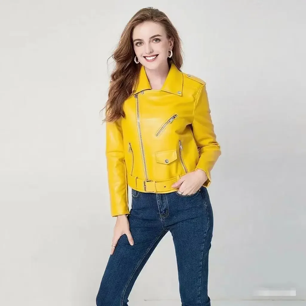 • Premium Leather Material : Crafted from high-quality leather, this jacket offers durability and a luxurious feel, perfect for the fashion-forward woman.