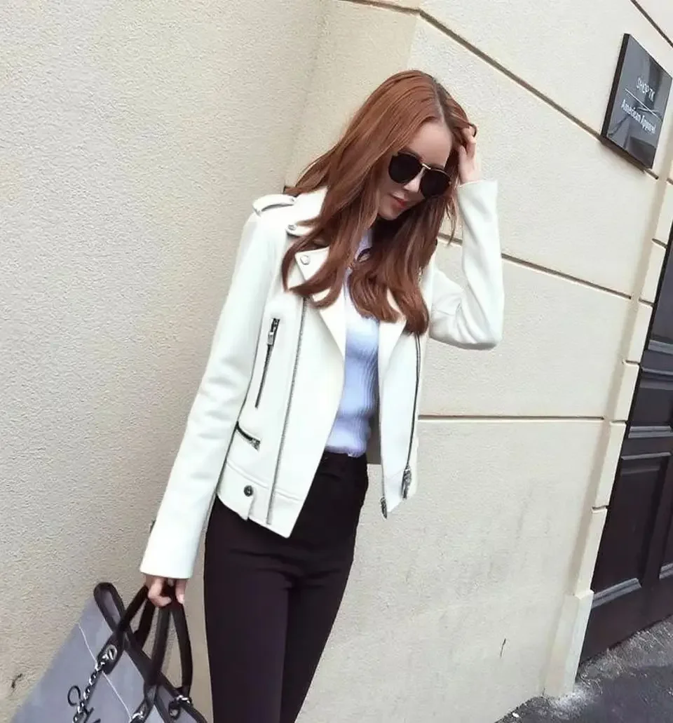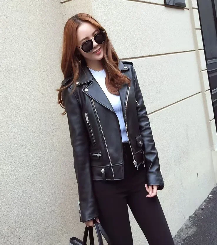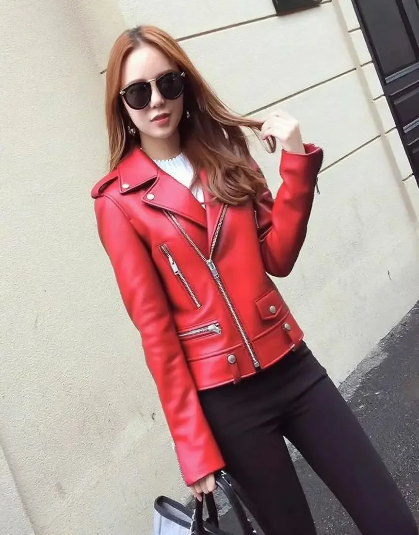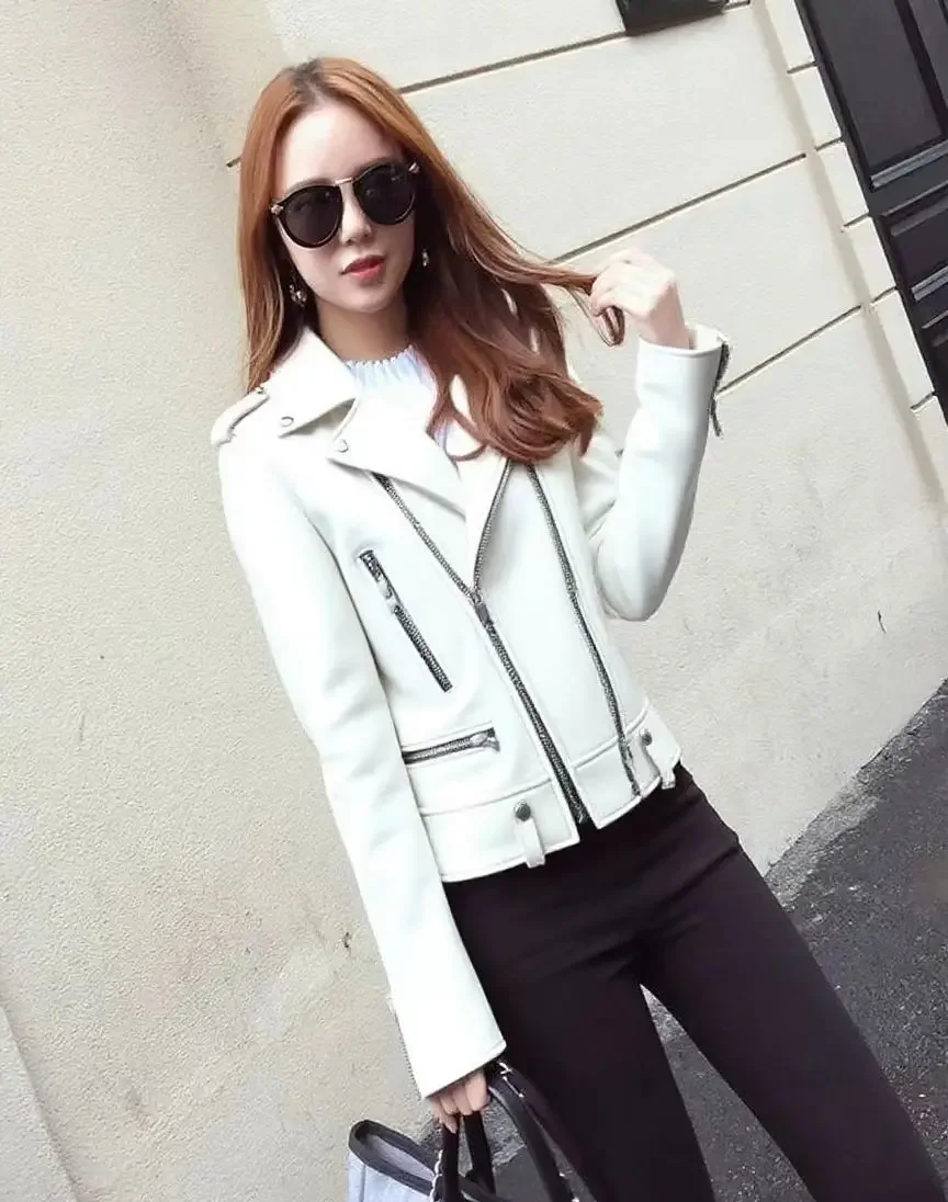 • Korean Slim Design : This women’s leather coat features a Korean slim design, offering a stylish and flattering fit for modern women.